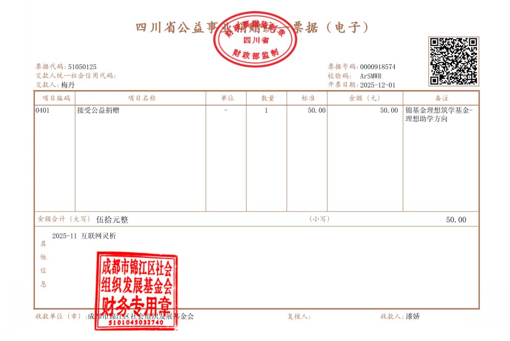 2025-11-30 梅丹 中国 ¥50.00 工作收入 513*************** 公司采购