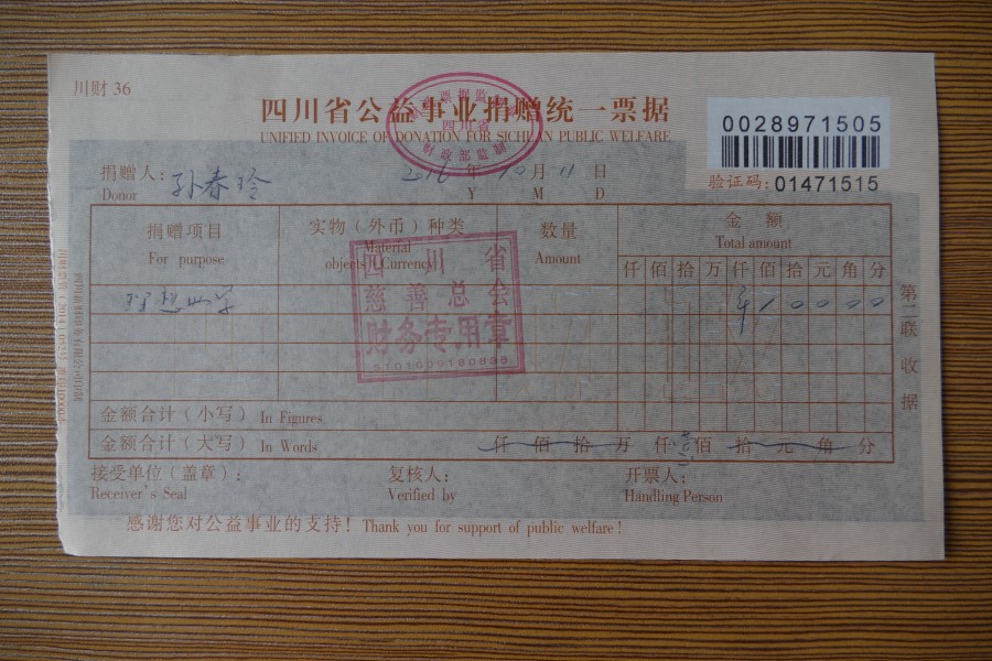 日期 姓名 国籍 捐赠金额 捐助来源 身份证号码 职业