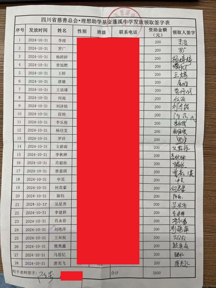 日期 姓名 籍贯 身份证 出生年份 受赠金额 学校 学业阶段