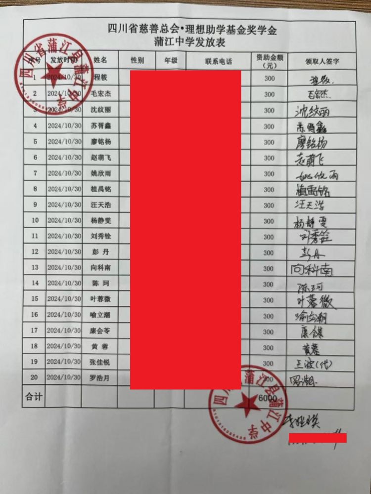 日期 姓名 籍贯 身份证 出生年份 受赠金额 学校 学业阶段