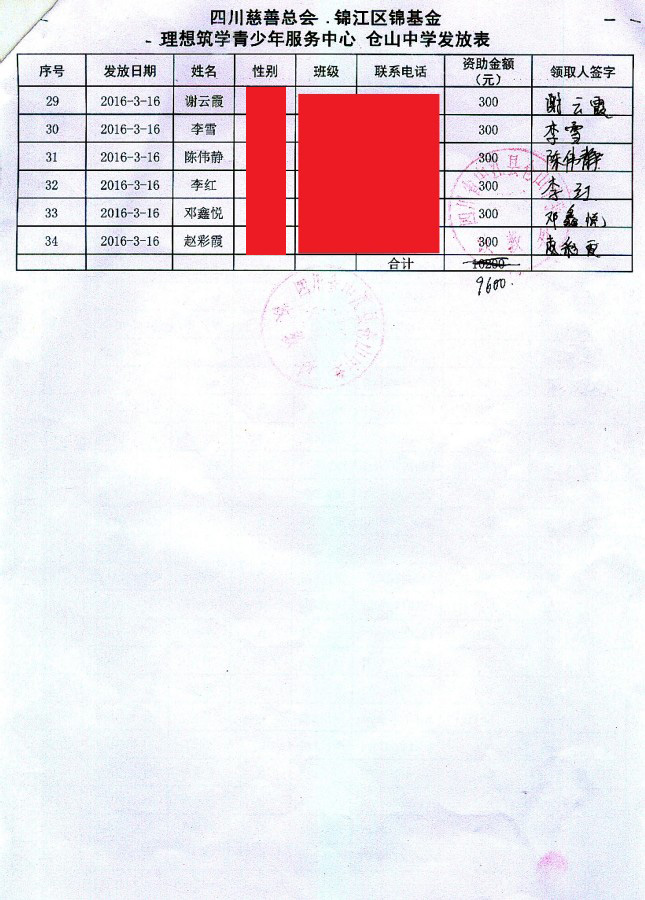 日期 姓名 籍贯 身份证 出生年份 受赠金额 学校 学业阶段